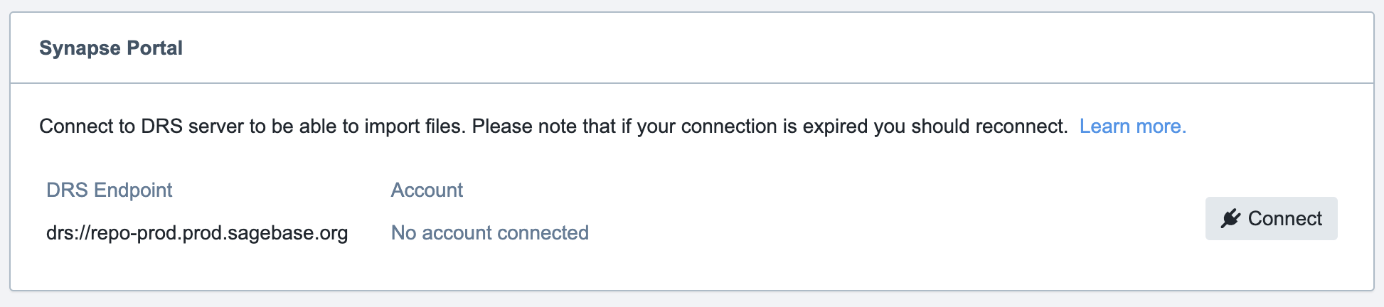 Scroll down to the section with the heading Synapse Portal. Click Connect.