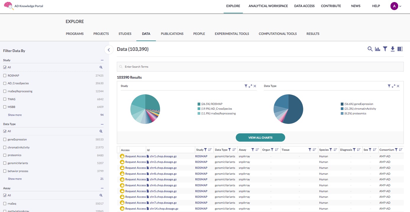 2. In the AD Knowledge Portal, click on the Explore tab, followed by the Data subtab.